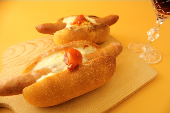 にんにく漬けしたセミドライトマトを練り込んだ生地に、自家製ホワイトソースとウインナーを挟んで焼き上げました。ジューシーなウインナーの味わいに、お酒が進むこと間違いなし。トマトの風味とホワイトソースのまろやかさで、濃厚な味わいも飽きずに食べられます。