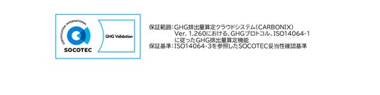 この度、ソコテックによる、ISO14064-3:2019※に準拠した第三者妥当性確認を実施し、「CARBONIX」がGHG排出量算定システムとして、