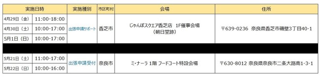 【奈良県内の実施予定】