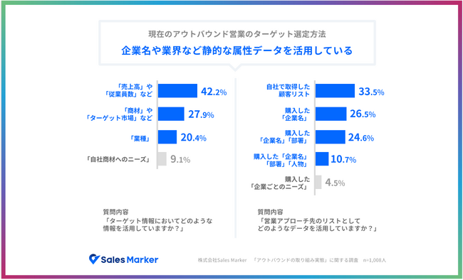 ほとんどの企業が、社内外から集めた企業の属性データを基にアプローチ先を選定しており、顧客のニーズに基づいたターゲティングを実践している企業は数%のみという結果でした。
