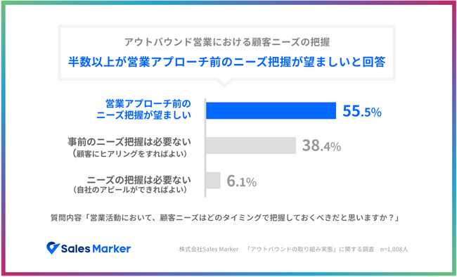 顧客のニーズは、約55%が「営業アプローチ前に把握したい」