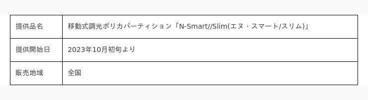 ナカバヤシ株式会社(本社:大阪市中央区、社長:湯本 秀昭)は、自社ブランドの調光ガラスブランド「N-Smart(エヌ・スマート)」から、日本国内における調光フィルム採用の移動間仕切において日本初※の移動式調光パーティション「N-Smart//Slim(エヌ・スマート/スリム)」を2023年10月初旬より提供を開始します。