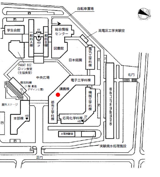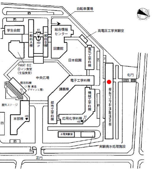 ・所在地:神戸市立工業高等専門学校 機械工学科実験実習棟(赤丸箇所)