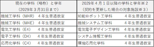 ※3:神戸高専のネーミングライツには、パートナーが契約期間の更新を希望する場合、その理由を付して契約期間の末日の6ヶ月前までにその旨を神戸高専に通知することにより、優先的に契約交渉を行うことができる権利が付与されています。契約を更新した場合の2029年4月以降に対象となる学科と学年は上記のとおりです。
