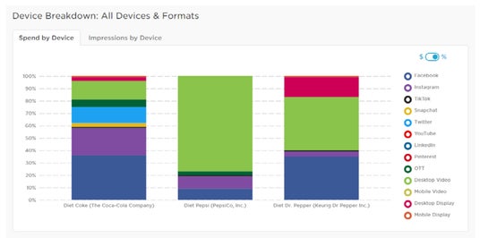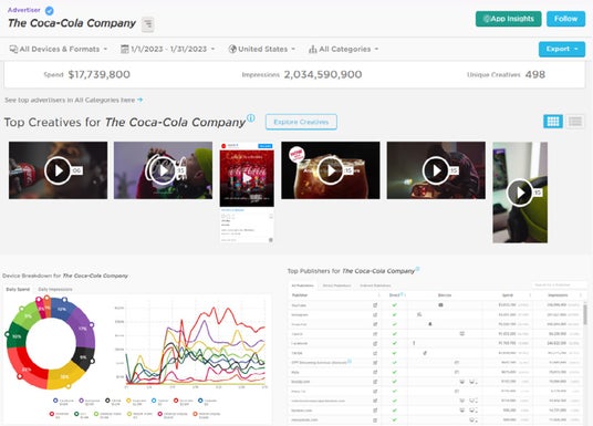 ユーザーは、Facebook、Instagram、X(旧:Twitter)、YouTube、ディスプレイ、動画、モバイル、OTT全体にわたって、配信された広告、支出とインプレッションの推定値、シェアオブボイス(SoV)、ブランドの広告戦略に関するインサイトを手に入れることができます。