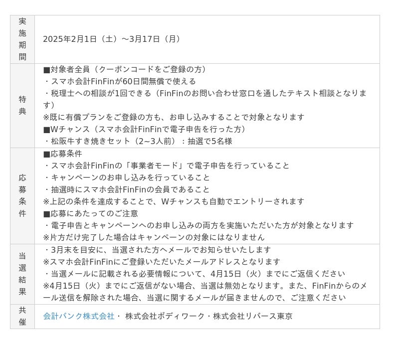 確定申告シーズン真っ最中の現在、フリーランスや個人事業主の皆様が「スマホ会計FinFin」を活用し、手軽に確定申告を行っていただけるよう、お得な特典が付いた特別なキャンペーンを開催しております。