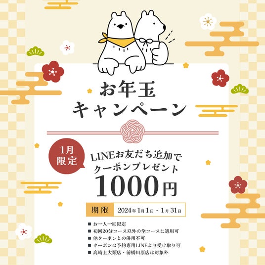 公式予約LINEにて、1月中に利用できる1,000円オフクーポンを配信。初回顧客もお試しコースに適用可能な年1回の豪華企画を開催中。