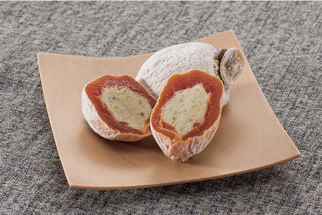 干し柿で有名な長野県産の市田柿に自慢の栗きんとんをたっぷりと詰めました。