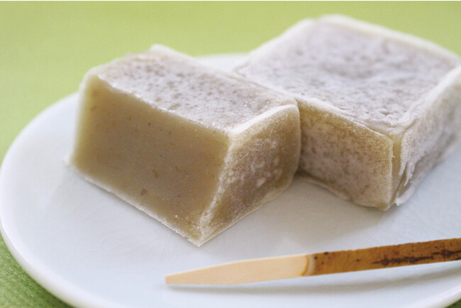 鮮やかなあめ色の果肉をきめ細かな白い粉が覆い、もっちりとした食感と上品な甘味があるのが特徴。
