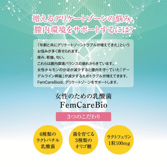 現役看護師、及び開発者である布施公予が代表を務める株式会社ナースキュアはデリケートゾーンをサポートするデーデルライン桿菌サプリメント「Fem Care Bio」を発売。