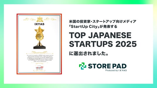 お店とお客様をつなぐAI搭載型の店舗情報発信・分析プラットフォーム「STOREPAD(ストアパッド)」を開発・販売するイクシアス株式会社(本社:東京都中央区銀座、代表取締役CEO:内藤崇司)が、米サンフランシスコで投資家・スタートアップ向けにメディアなどを通し情報や知識の連携ネットワークを提供するStart Up City社 によって、「TOP JAPANESE STARTUPS 2025」に選出されたことをお知らせいたします。
