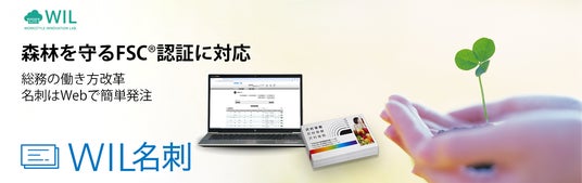 「WIL 名刺発注システム」は、名刺の発注を所属する支社や営業所ごとに取りまとめ、台帳管理や発注業務を分散・簡略化するサービスで、これにより名刺管理を行う部署の働き方改革を支援し、利用者にも短納期で名刺が納品されるというメリットがあります。このサービスの用紙ラインアップにFSC(R)認証用紙を加えました。