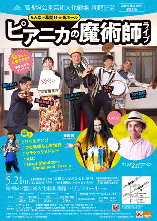 高槻城公園芸術文化劇場開館を記念し、鍵盤楽器の新たな魅力を伝えるために世界中で活動している演奏集団「ピアニカの魔術師」を招いたコンサートを開催します。今回は特別ゲストも参加!ぜひお越しください。