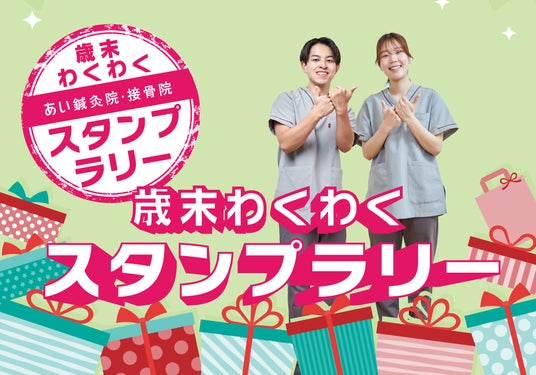 あい鍼灸院・接骨院では、2024年12月1日から2024年最終営業日までの期間限定で、スタンプラリーを開催いたします。当院をご利用いただく皆さまに楽しく健康管理を続けていただくことを目的としています。