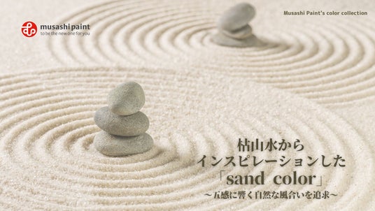 武蔵塗料は、世界的な人気を集める「和テイスト」に焦点を当て、自然との調和を表現した日本庭園の砂を表現した塗料「sand color」を、武蔵塗料のカラーコレクションに加えました。