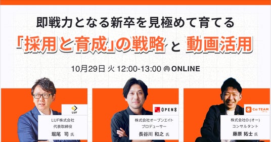 そこで今回は「即戦力となる新卒を見極めて育てる「採用と育成」の戦略と動画の活用」について、新卒採用・育成のプロである3社がノウハウを大公開いたします!