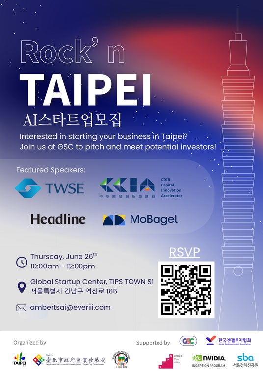 TEHは6月26日、韓国最大のテクノロジー展示会「Next Rise」期間中、韓国最大のスタートアップコミュニティTIPS TOWNにて「Rock’n Taipei in Korea」プロモーションイベントを開催します。イベントでは韓国のスタートアップ企業、産業コミュニティ、投資家を招待し、台北のスタートアップエコシステム、政策資源、投資環境について紹介し、韓国と台北のスタートアップ協力と国際連携を促進します。
