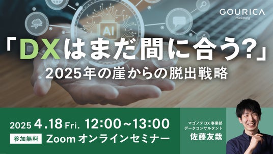 「人に寄りそう合理化で世界をもっと自由にもっとゆたかに」をビジョンに掲げるゴウリカマーケティング株式会社(本社:東京都渋谷区、代表取締役:岡本 賢祐)は、4月18日(金)に「DXはまだ間に合う?」~2025年の崖からの脱出戦略 ~をテーマにウェビナーを実施いたします。