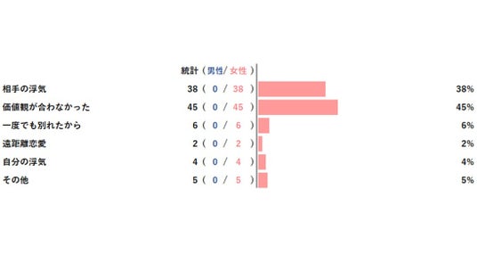 でも、基本的には乗り越えられないと思っている人が多いようです。価値観以外の部分だと、やはり「浮気」は許せない原因です。
