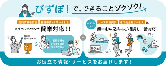 (※)びずぽ!…「小口販売金融」・「ベンダーリース」にて当社と取引のあるご契約者さま向けのビジネスポータルサイトです。