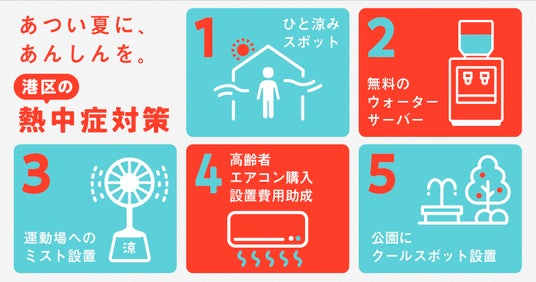 港区では、区民と区を訪れる全ての方の熱中症予防に向けて様々な取組を行っています。