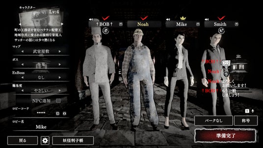最大4人のオンライン協力プレイで、妖怪が徘徊する閉ざされた空間からの脱出を目指します。