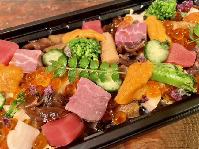 女の子の健やかな成長を祈る桃の節句や卒業・入学シーズンのハレの日のお食事にKINTANのお肉のちらし寿司をご用意いたしました。希少部位のフィレ肉と北海道産生雲丹、北海道産いくらの豪華食材をメインにKINTANの料理人が厳選した12種類の具材をバランス良く盛り込みます。