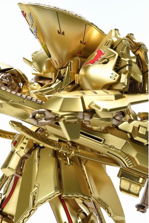 劇中のバスター・ランチャーを構える一連の動作を再現するため、「ABSOMEC」を一部関節に採用。構える際には、砲身の折り畳み機構こそ差し替えの選択式であるものの、幾重にも可動機構が仕込まれた接続アームを回転・可動させることで、劇中同様、腰溜めに脇に抱えることが可能です。股関節は、適度な渋み(硬さ)と広範囲な可動域を実現。脚のスタンスを大きく開いて重心を落とし、バスター・ランチャーを構えた際にも抜群の安定性を誇ります。また、引き出し可能な関節機構により、スパイド(実剣)を構える等の大胆なポージングも可能。バスター・ランチャー本体は複雑なデザインと機構を持つ接続アームにより、腰部ユニットにも懸架できます。