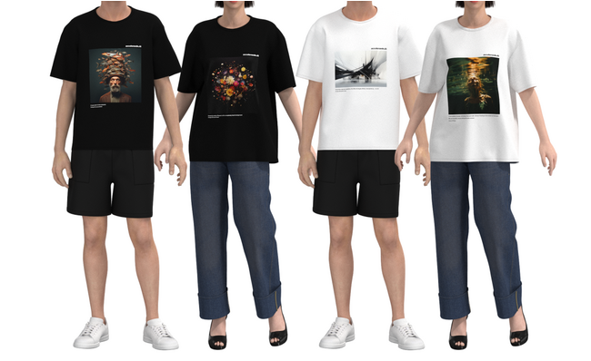 リアルウェアはOpenFashionの公式サイト上で購入いただけるほか、デジタルウェアはメタバースプラットフォーム「ZEPETO(ゼペット)」にて、アバターが実際に着用できるアイテムとして販売しております。AI技術を活用したデザインプロセスによって生み出された、個性豊かなデザインの「プロンプトTシャツ」を是非ご覧ください。