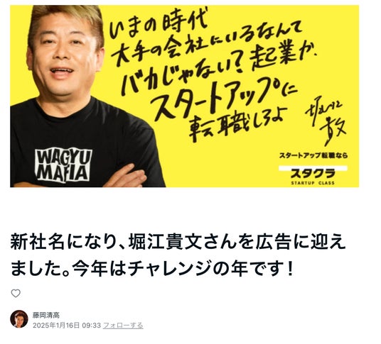 イメージキャラクターに堀江貴文氏を起用し、「スタートアップクラス」の普及に励みます