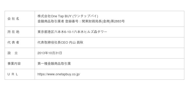 【One Tap BUY 会社概要】