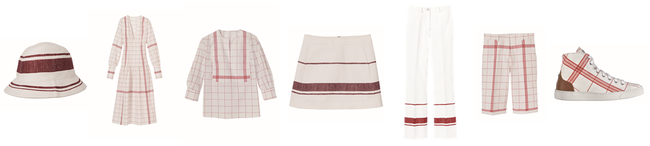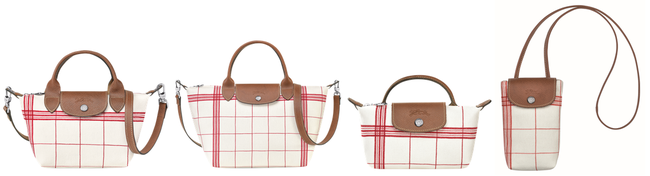 加えて、シャルベのフレンチリネンに着想を得た「ル プリアージュ(R)」新作として、お馴染みの赤いチェック柄をあしらったトップハンドルバッグ2種やハンドル付きポーチ、レザーレース付きスマートフォンケースも登場いたします。他にもロンシャン2022年春夏コレクションのプレタポルテでは、フレンチリネンのストライプとチェック柄が随所にあしらわれています。パリッとした白のコットンポプリンで仕立てたスカートやパンツの裾を彩る赤の太ストライプ、そしてコットン地で仕立てたロングドレスやブラウス、バーミューダショートパンツを駆け巡る細かなチェック柄が爽やかなリラックスムードを演出し、キャンバス地で仕立てたストライプのサンハットやチェック柄のハイカットスニーカーという今季注目のアクセサリーがその装いにさらなる華を添えます。