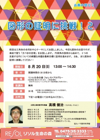 <リソル生命の森「お茶の間ゼミ」など、2017年8月の各種講座予定>