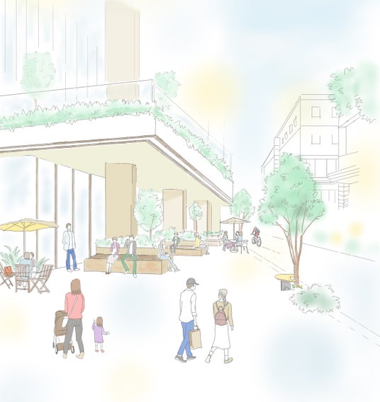 具体的には、憩いの空間などのオープンスペースの創設や、土地の有効活用のための複数の敷地の集約、また、賑わい創出につながるよう1階に飲食店などを構える場合などです。
