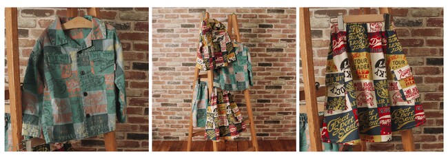 BREEZEのパッチワーク柄を復刻したシャツジャケットとスカート。