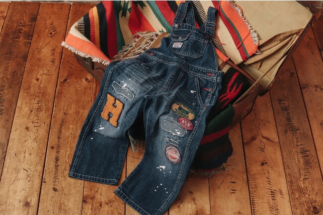 過去のBREEZE商品のワッペンを散りばめたサロペット。