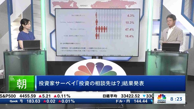 日経CNBCが7月5日(水)に放送した「朝エクスプレス」では、解説委員長の直居敦が「誰が顧客本位で信頼できるアドバイザー、相談相手なのか、多くの人にとりとてもわかりにくい状況が続いている」と今後の課題を指摘しました。