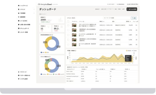 こうした課題に対応するため、KengakuCloudは管理画面を全面リニューアル。既存のシンプルな構成は維持しつつ、より直感的でモダンなUIに刷新しました。また、アクセス数や予約率などを視覚的に把握できるダッシュボード機能を新たに搭載するなど、専門知識を持たない・解析に不慣れなスタッフでも活用できる設計です。