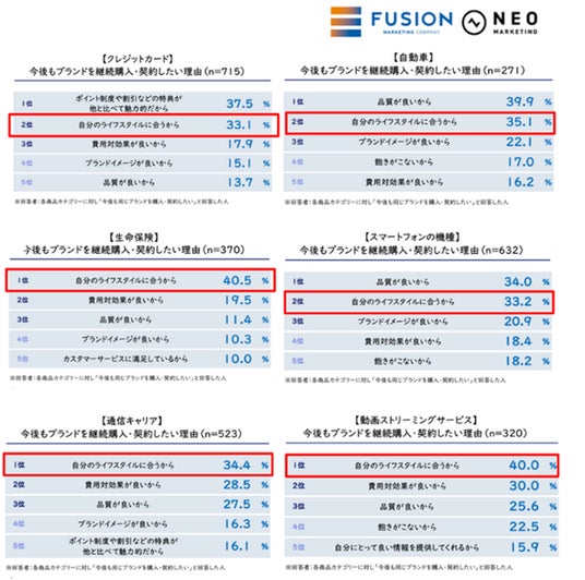 9つのカテゴリー中、7つのカテゴリーにおいて「自分のライフスタイルに合うから」が2位以内にランクインしました。