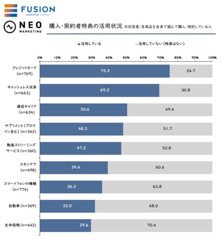 続いて、各商品カテゴリーにおける「購入・契約者特典」の活用状況をお聞きしました。