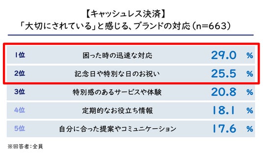 続いて、ブランドからどのような対応を受けると「大切にされている」と感じるかをお聞きしました。