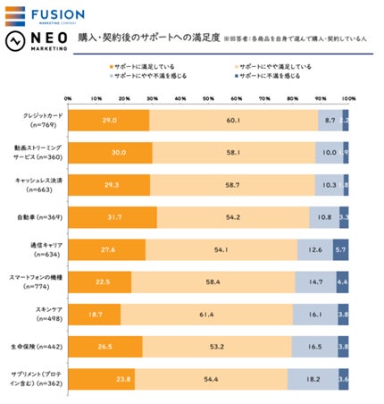 各商品カテゴリーにおける「購入・契約後のサポート」への満足度を、それぞれお聞きしました。