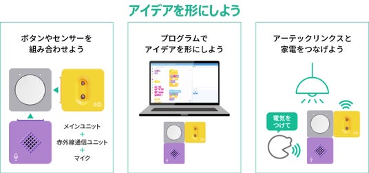 ロボットやゲームを『つくって終わり』だった従来のプログラミングキットとは異なり、『アーテックリンクス』は『実際の生活を楽しく、便利にするモノ』をつくることができます。