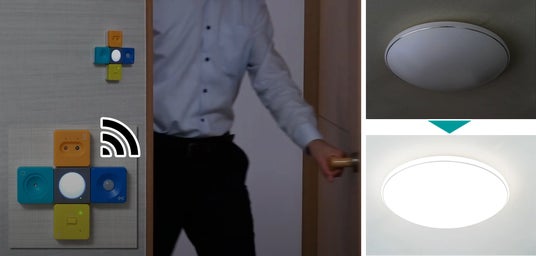 暗い部屋に人が入ると自動で照明をつけることができます。