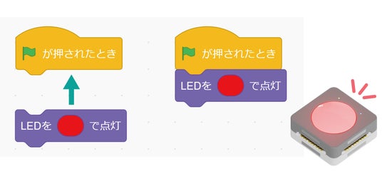プログラミングは、ブロックをつなげるだけのかんたん操作なので、プログラミングがは じめての人でも安心です。