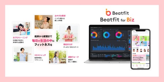 「Beatfit for Biz」とはは、従業員の運動不足を簡単に解消することが出来る、当社が運営するフィットネスアプリ「BeatFit」を活用した健康経営ソリューションです。当社オリジナル制作のフィットネスコンテンツは「運動を習慣づけること」を目的にデザインされているため、Youtubeなどの無料の動画コンテンツとは全く異なる体験価値を提供しております。これまでウォーキングイベントを実施したけどなかなか効果が出ない、体育奨励について検討しているが結果が出ないなど、従来の取り組みに課題を抱える企業様に最適なソリューションを提供します。