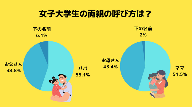 女子大学生は「パパ/ママ」が多数派。男子大学生も3人に1人は「「パパ/ママ」派。