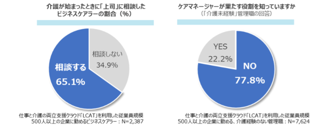 <調査>ビジネスケアラーの6割超は上司(管理職)に相談するが、約8割の管理職は基本的なビジネスケアラー対応リテラシーを持ち合わせていない