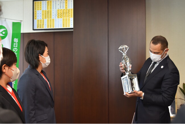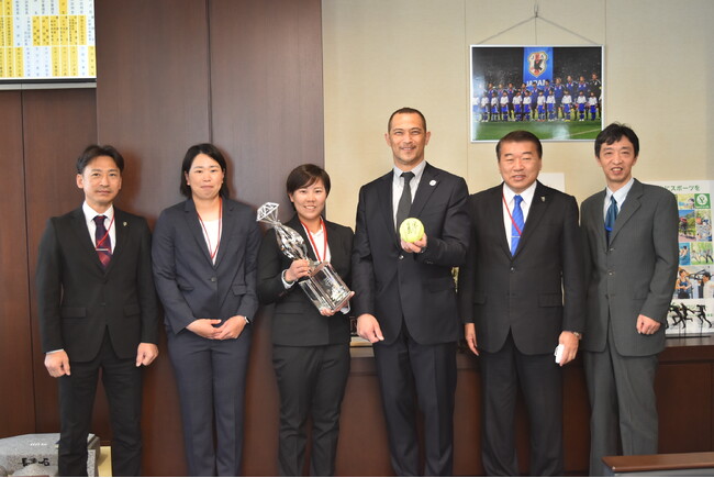 2023年1月12日にスポーツ庁・室伏広治長官を表敬訪問し、JD.LEAGUE島田利正チェアマンよりリーグ開幕元年となった2022シーズン終了の報告と、初代チャンピオンに輝いたビックカメラ高崎の内藤実穂キャプテン、最高殊勲選手賞を受賞した濱村ゆかり選手より優勝の報告を行いました。
