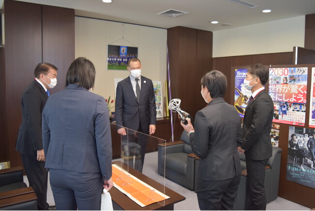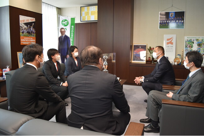 最後に、23シーズンに向けて「今年、JDリーグ2年目のシーズン、ますます発展されることを期待しています」と室伏長官より熱いエールをいただき、約20分間の訪問は終了となりました。